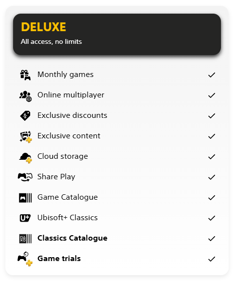 Dengan PS Plus Essential, kamu bisa bermain game online bersama teman atau komunitas global di PS4 maupun PS5. Tanpa langganan ini, mode online pada sebagian besar game tidak bisa diakses